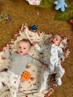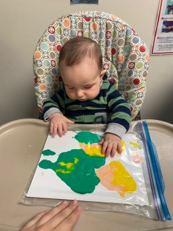 Our infant curriculum is play based. We offer a lot of opportunities for free play in the classroom for learning and expressing themselves. We plan other activities based on their development. The infant daily schedule of diapering, feeding and napping is on demand. We spend a lot of time working on tummy time, learning how to sit, walk and talk.